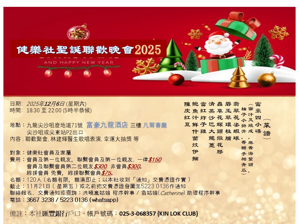 最新活動更多 健樂社聖誕聯歡晚會2025 2025秋冬季迎新會暨生日會 2025年秋季旅行 最新講座更多 2024年5月8日 言語治療舌頭運動講座 2024年4月27日 AI牙科檢測及身體檢查工作坊 2024年4月8日 牙科護理問題講座